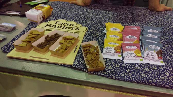 Ten slotte zag ik uit een ooghoek de Farm Brothers staan, twee blije gasten die maar beter niet aan Boer Zoekt Vrouw mee kunnen doen, want geen huis is groot genoeg voor zo veel post. Ooit at ik hun Spelt Crackers, die vervolgens uit de schappen verdwenen. Ik waande ze al failliet, maar ze blijken gewoon uiterst smakelijke koekjes te maken! Binnenkort komt er een nieuwe smaak op de markt en ik hoop rond die tijd een mooie smaaktest aan jullie te kunnen presenteren.