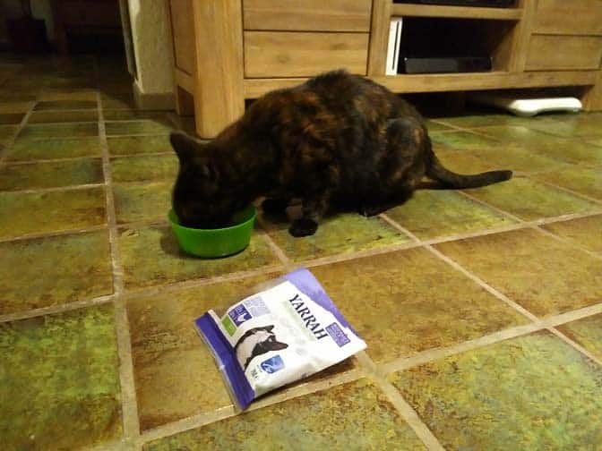 Ook schoonmaken kun je doen met biologische middelen. Heel ver hierin gaat Sonett (die zijn zelfs bio-dynamisch). Hun vloeibare handzeep die naar rozemarijn ruikt is de fijnste handzeep die ik tot nu toe tegenkwam. Die bestaat al lang, maar Sonett zit niet stil. Zo kreeg ik een vloerreiniger en een wc-reiniger toegestopt. Daarover later meer! Ook voor onze katten was er wat nieuws. Ze eten al een jaar of twee graanvrije biologische brokken van Yarrah. Speciaal voor je-weet-wel-katten (en dat zijn die van ons allebei) heeft Yarrah nu een variant met minder vet en meer vezels. Thuis meteen voorgezet. Goedgekeurd.