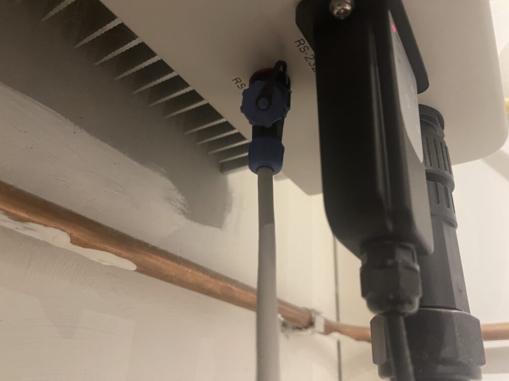 De meeste omvormers hebben een of meerdere RS485, RS232 en TCP/IP aansluitingen ten behoeve van communicatie met de omvormer. Zo heeft mijn SAJ ook een RS232-poort, die gebruikt wordt door de WiFi dongle zodat ik hem via mijn app kan uitlezen. De poorten vind je doorgaans aan de onderzijde van de omvormer, en meestal staat er bij de omvormer vernoemd welk type poort het is.