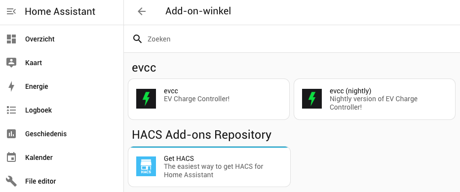 Ververs de pagina en vervolgens verschijnt EVCC als beschikbare addon: