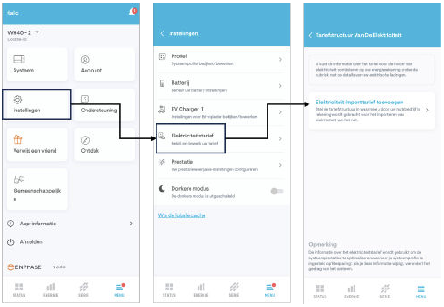 - Ga naar Menu > Instellingen > Elektriciteitstarief > Elektriciteit importtarief toevoegen
