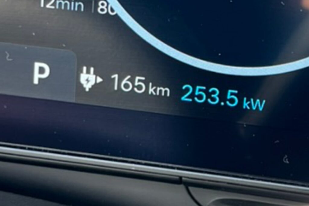 Bij een Ionity-laadstation konden we profiteren van laadsnelheden van iets meer dan 250 kW. Maar wat nog indrukwekkender was, was de continuïteit van deze hoge snelheid. De auto hield de laadsnelheid lange tijd ruim boven de 200 kW vast. Met een laadtijd van slechts 23 minuten om van 18% naar 85% ging het opladen zo rap dat onze geplande lunchpauze eigenlijk te kort was – een luxe probleem dat je graag hebt als EV-rijder! Uiteindelijk hebben we doorgeladen naar 94%, want het was niet druk en de boterhammen nog niet op.