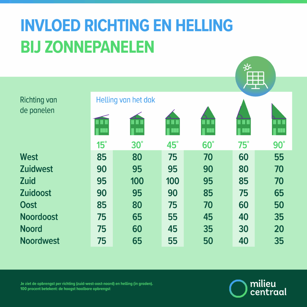 Daarbij hangt natuurlijk ook alles af van wat er bij jouw woning mogelijk is, hoe je dak georiënteerd is en of je eventueel een plat dak op een garage of schuur beschikbaar hebt.