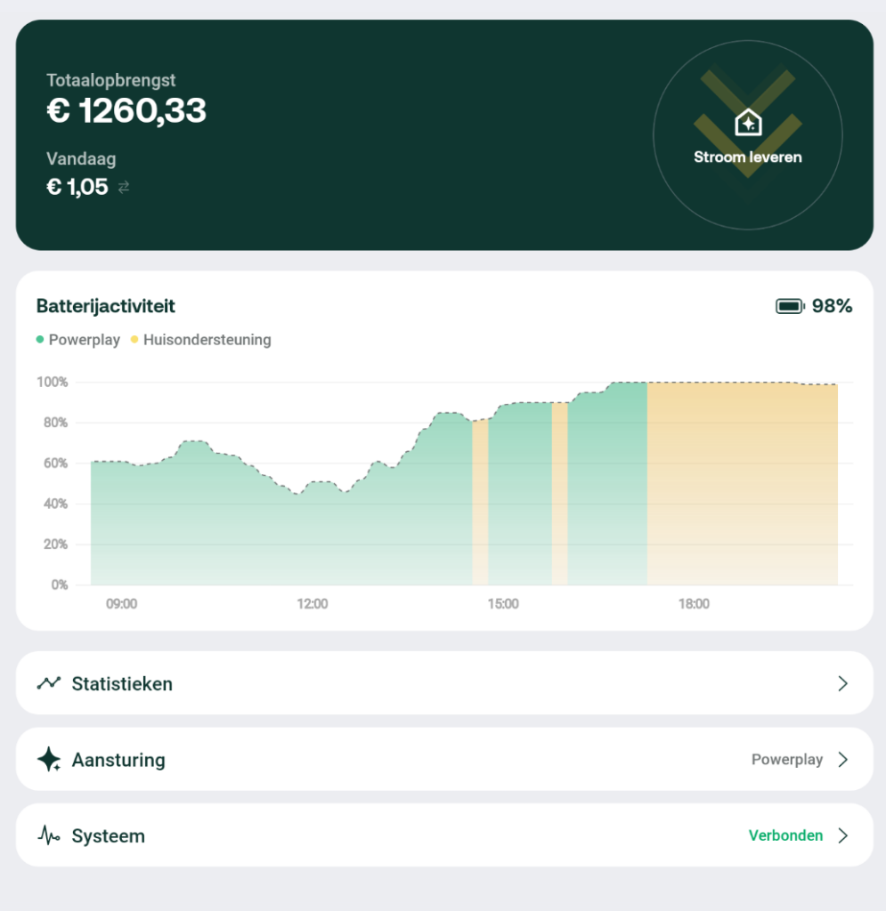 - De ondersteuning houdt altijd ruimte over in je batterij verdiensten met Powerplay.